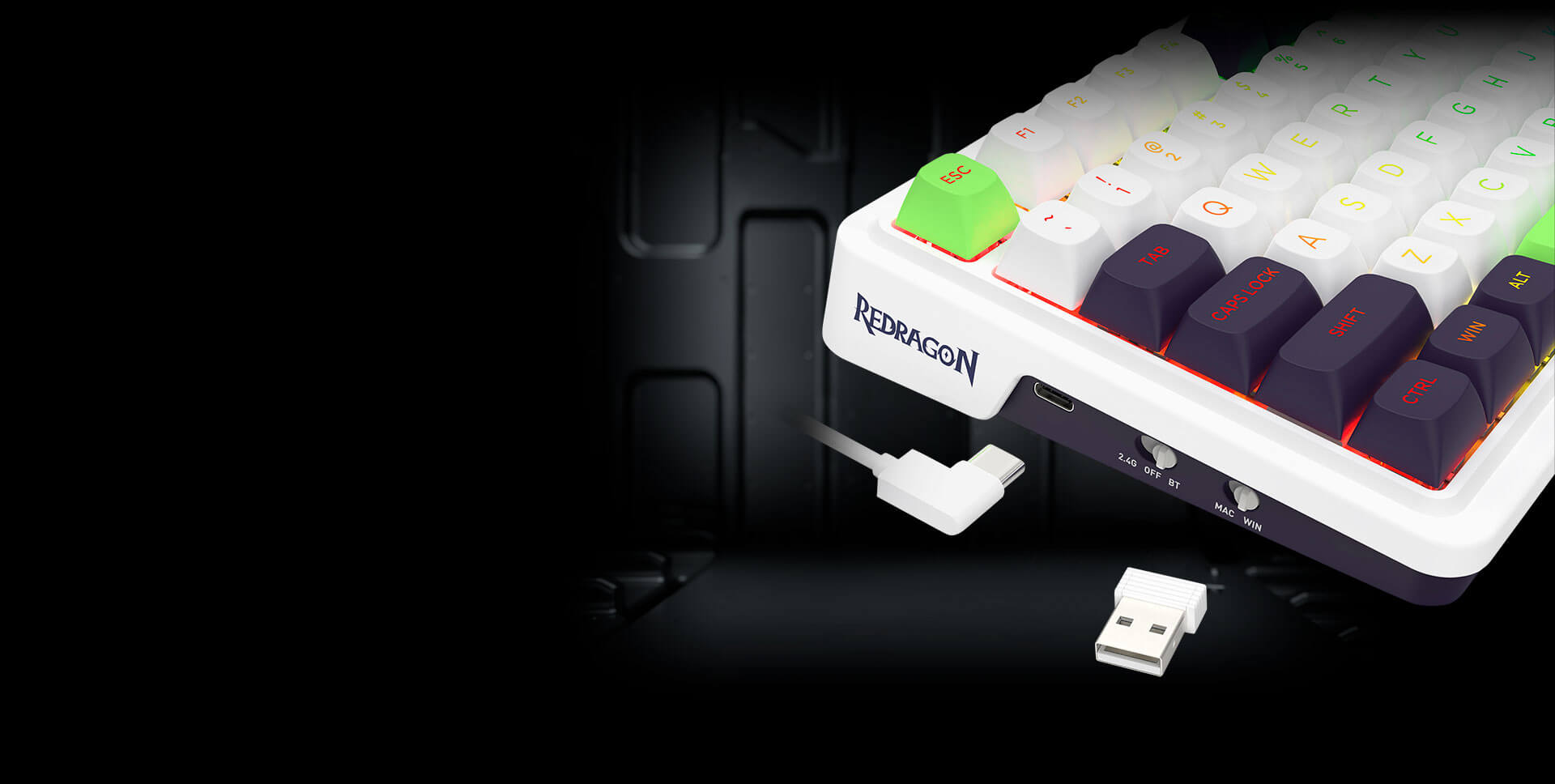 ▶ RF de 2,4 GHz (con dongle USB) para el juego competitivo en modo inalámbrico.