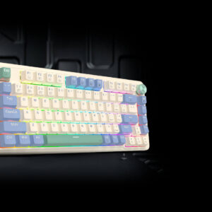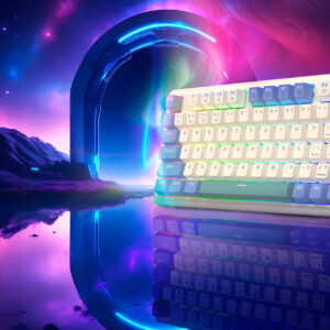 El Ucal Pro es un teclado mecánico 75% con teclas premium de PBT, triple conexión, amortiguación gasket, rueda de control y batería de duración extra larga. Además, está equipado con iluminación RGB y un software renovado para la personalización total.