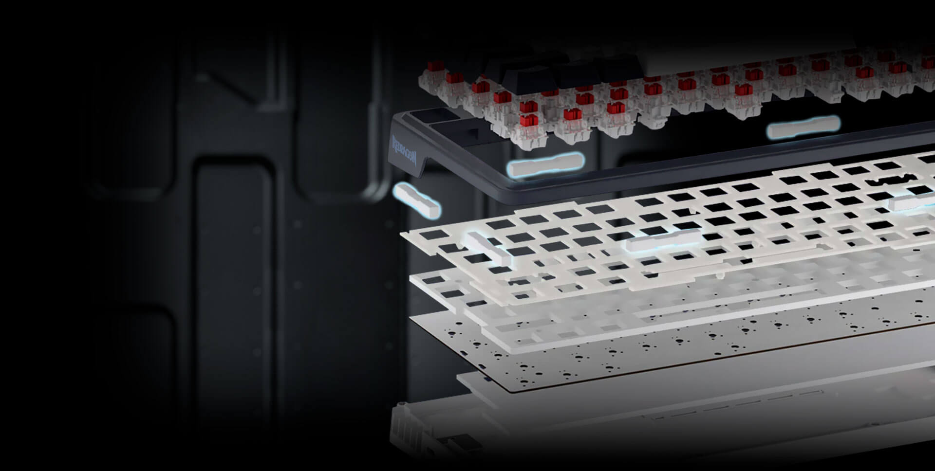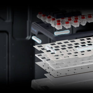 El Ucal Pro es un teclado mecánico 75% con teclas premium de PBT, triple conexión, amortiguación gasket, rueda de control y batería de duración extra larga. Además, está equipado con iluminación RGB y un software renovado para la personalización total.